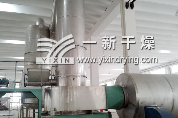 工作原理:湿物料由加料器连续地加到干燥器上部di一层干燥盘上,带有耙叶的耙臂作回转运动使耙叶连续地翻抄物料。物料沿指数螺旋线流过干燥盘表面,在小干燥盘上的物料被移送到外缘,并在外缘落到下方的大干燥盘外缘,在大干燥盘上物料向里移动并从中间落料口落入下一层..